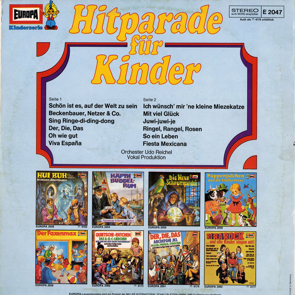 Schön ist es, auf der Welt zu sein – Beckenbauer, Netzer & Co. – Sing Ringe-di-ding-dong – Der, die das – Oh wie gut – Viva Espana – Ich wünsch? mir 'ne kleine Miezekatze – Mit viel Glück – Juwi-juwi-je – Ringel, rangel, rosen – So ein Leben – Fiesta Mexicana