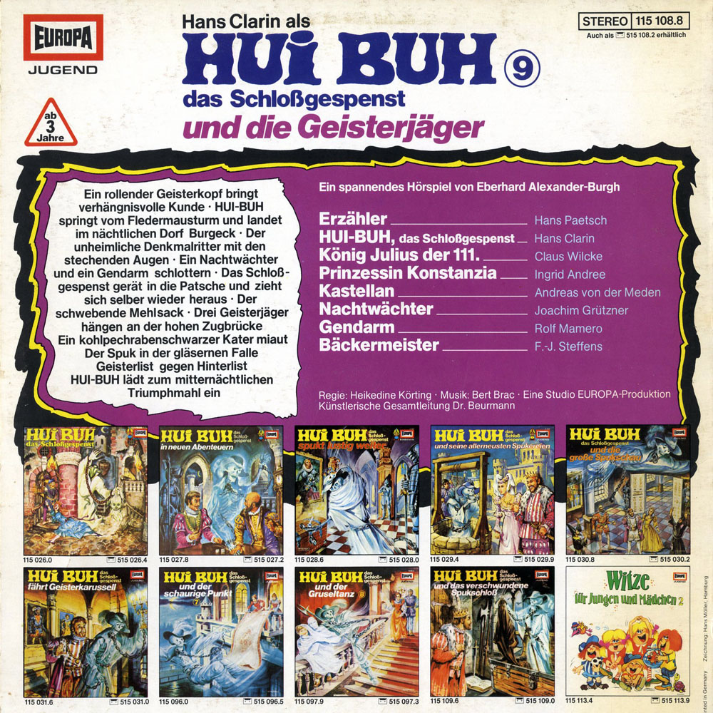 Verwünscht seit über 400 Jahren faucht Hui Buh das Schlossgespenst allnächtlich zur Geisterstunde hoch droben in der Fledermausturmkammer aus seiner alten, vermoderten Holztruhe, um mit seiner rostigen Rasselkette auf Schloss Burgeck herumzuspuken.