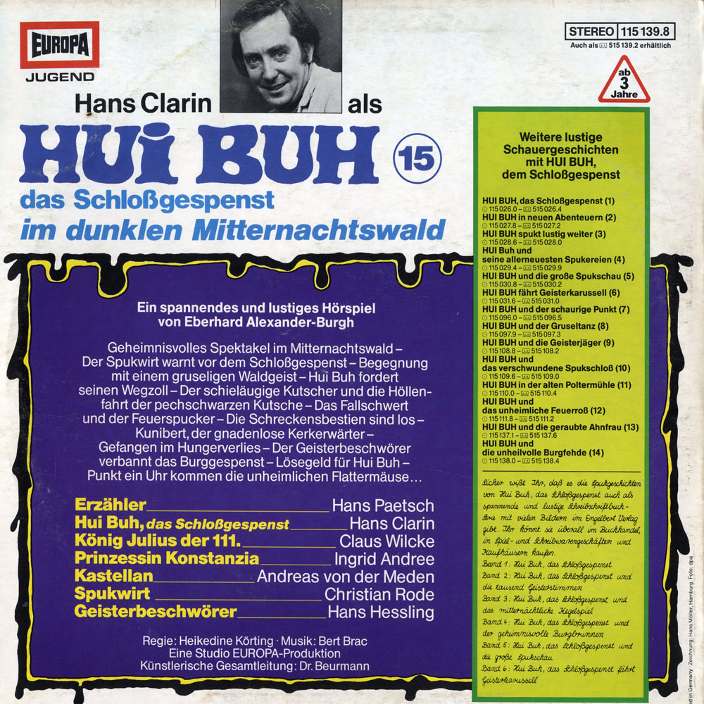 Verwünscht seit über 400 Jahren faucht Hui Buh das Schlossgespenst allnächtlich zur Geisterstunde hoch droben in der Fledermausturmkammer aus seiner alten, vermoderten Holztruhe, um mit seiner rostigen Rasselkette auf Schloss Burgeck herumzuspuken.
