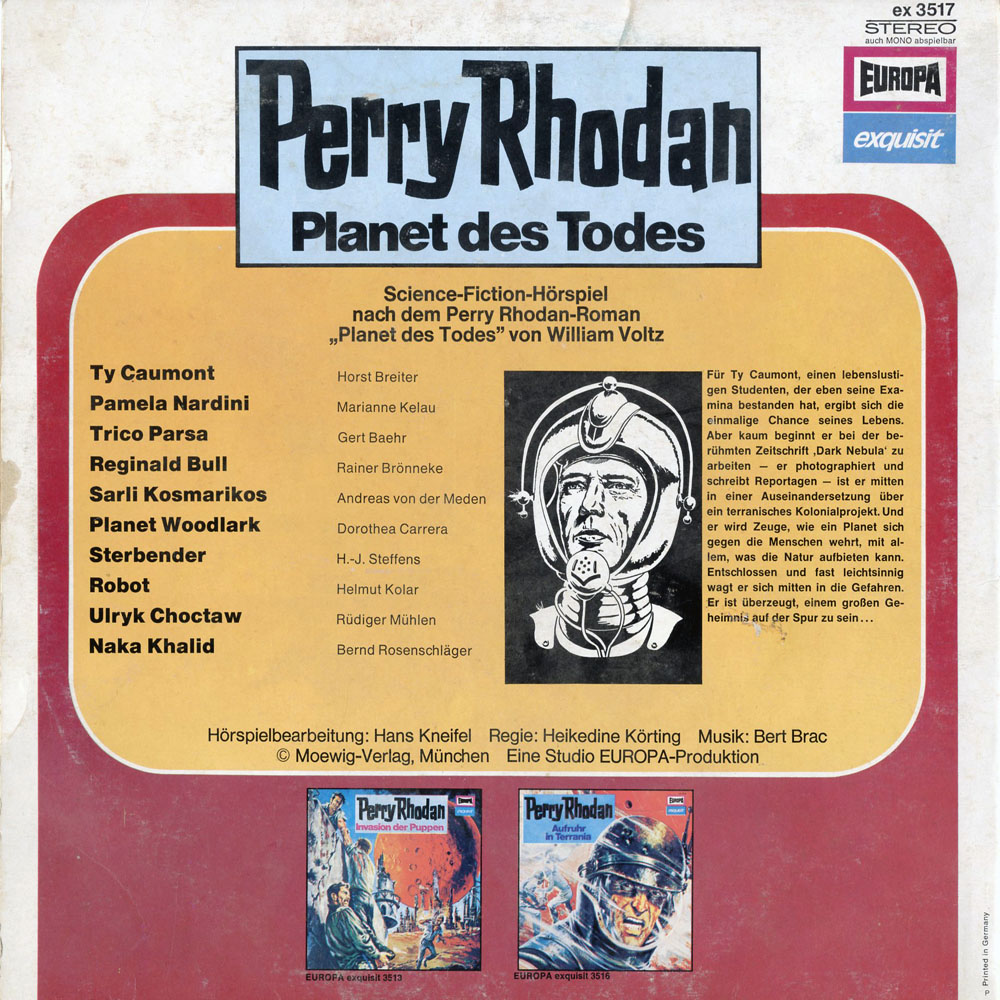 Hörspielbearbeitung von Hans Kneifel nach dem gleichnamigen Roman von William Voltz Musik: Bert Brac Neuauflage erschien mit identischem Cover unter der Bestellnummer 115 560.1