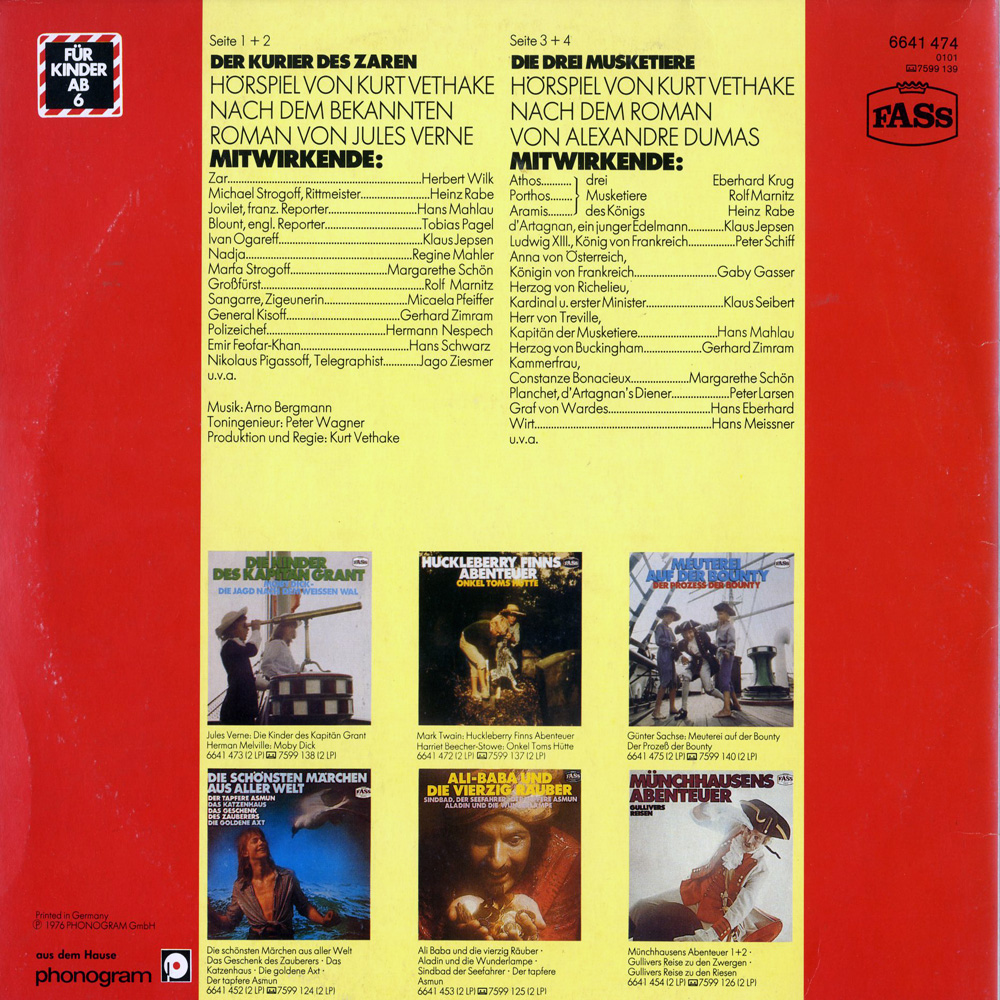 Hallo Mondramoe, BEIDE Hörspiele gibt es auf CD: "Der Kurier des Zaren" von Bella Musica, "Die drei Musketiere" von MARITIM.