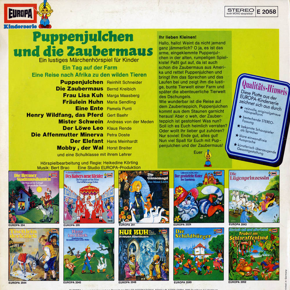 Wo die kleine Zaubermaus ist, geht es lebhaft und lustig zu. Der Puppe Julchen bringt sie das Sprechen und Laufen bei und zeigt ihr viele große und kleine Tiere, die auf einem Bauernhof zuhause sind. Auf einem fliegenden Teppich sausen sie sogar in den tiefen, geheimnisvollen Urwald von Afrika. Hier erleben die zwei Freunde viele Überraschungen