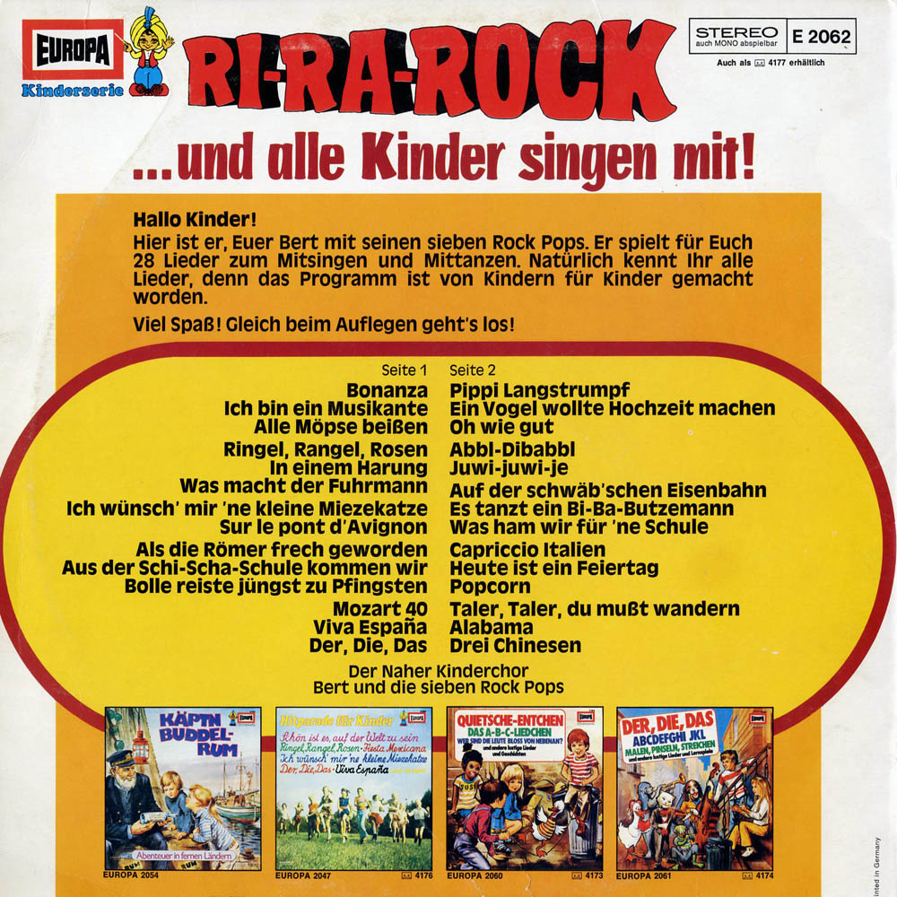 Hier ist er, Euer Bert mit seinen sieben Rock Pops. Er spielt für Euch 28 Lieder zum Mitsingen und Mittanzen. Natürlich kennt Ihr alle Lieder, denn das Programm ist von Kindern für Kinder gemacht worden. Viel Spaß! Gleich beim Auflegen geht's los!