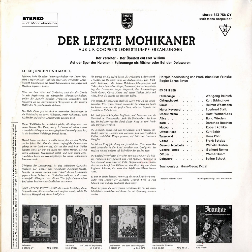 werkgetreue, atmosphärisch dichte Umsetzung des Romans (innerhalb der Sachzwänge, einen dicken Roman in 48 Minuten rüberzubringen)in der frühen Orient-Karl May Besetzung von Philips, Regie Benno Schurr, Buch Kurt Vethake, Lederstrumpf ist Kara Ben Nemsi Wolfgang Reinsch.