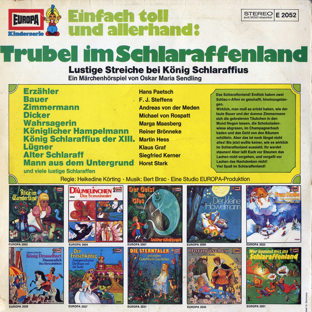 Das Schlaraffenland! Endlich haben zwei Schlau-r-affen es geschafft, hineinzugelangen. Wirklich, man muß es erlebt haben, wie der faule Bauer und der dumme Zimmermann sich die gebratenen Täubchen in den Mund fliegen lassen, die Schokoladenwiese abgrasen, im Champagnerbach baden und das Geld von den Bäumen schütteln. Aber das ist noch längst nicht alles! Bis jetzt wußte keiner, wie es wirklich im Schlaraffenland aussieht. Ihr werdet staunen! Aber laßt Euch vor Staunen das Lachen nicht vergehen, und vergeßt vor Lachen das Nachdenken nicht! Viel Spaß im Schlaraffenland!
