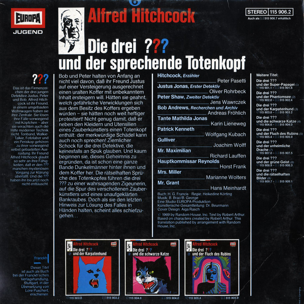 Die zweitbeste Drei Fragezeichenfolge. Den Totenschädel fand ich früher so schön gruselig. Auch Sprecher, Hintergrundmusik (in der Erstauflage) und Atmoshpäre sind toll