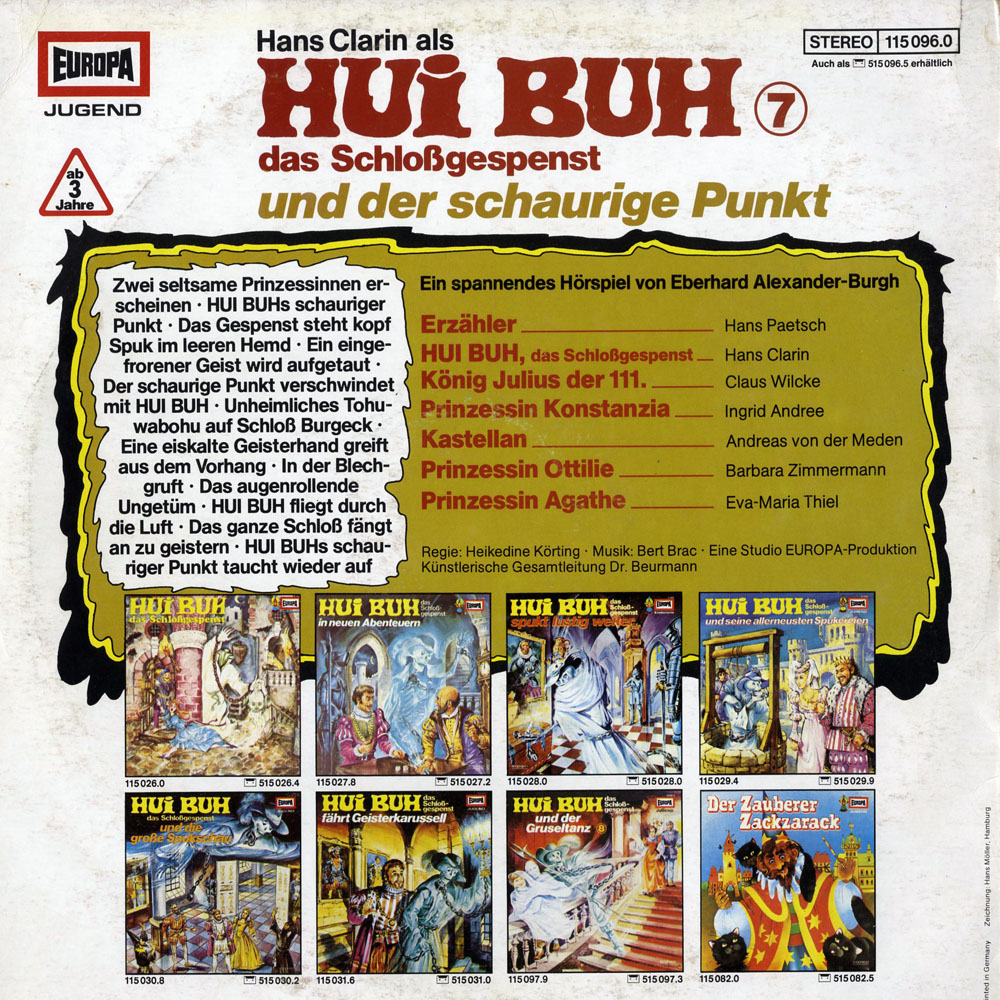 Verwünscht seit über 400 Jahren faucht Hui Buh das Schlossgespenst allnächtlich zur Geisterstunde hoch droben in der Fledermausturmkammer aus seiner alten, vermoderten Holztruhe, um mit seiner rostigen Rasselkette auf Schloss Burgeck herumzuspuken.