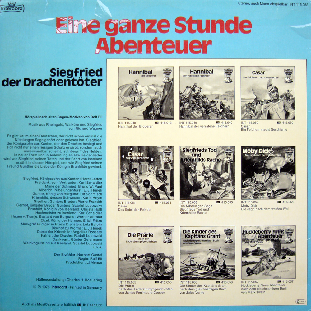 Ausführliches (Teil 2 ist die Intercord-LP Siegfrieds Tod und Kriemhilds Rache) und gut genießbares Hörspiel, sehr schön auch die Wagner-Musik.