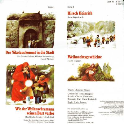 Letzte Änderung am: 07.01.2012 Der Nikolaus kommt in die Stadt: Elsa Grube-Deister Günter Sonnenberg Horst Ziethen Wie der Nikolaus seinen Bart verlor: Elsa Grube-Deister Ulrich Voß Hirsch Heinrich: Arno Wyzniewski Weihnachtsgeschichte: Horst Hiemer