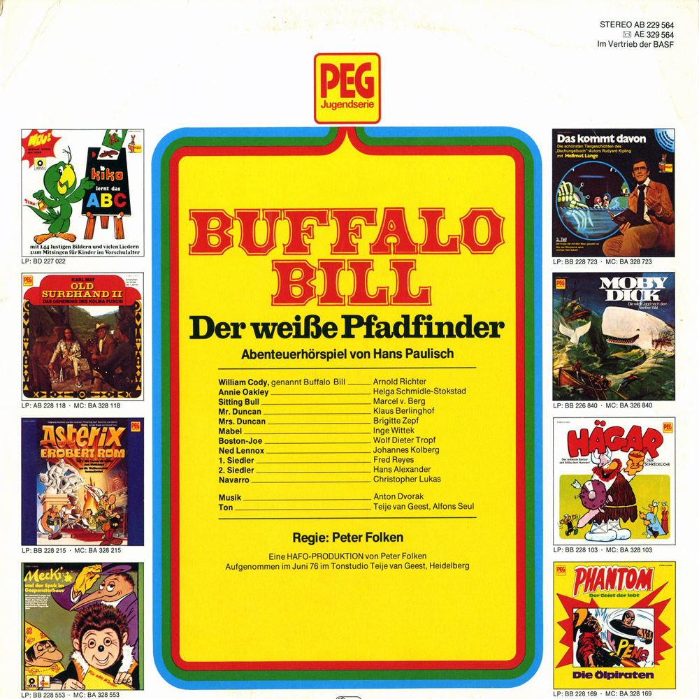 Ein sehr gelungenes HSP aus der Zeit, als Peter Folken in Heidelberg wirkte. Die Sprecher sind daher typisch: Arnold Richter als Buffalo Bill, ferner z.B. Brigitte Zepf, und Folken selbst spricht unter seinem Pseudonym 'Marcel von Berg' den Sioux-Häuptling Sitting Bull. Inhalt: Nach einer ihrer berühmten Western Shows sitzen Buffalo Bill, Annie Oakley und Sitting Bull zusammen, und Bill erzählt eine alte Story aus der Zeit, als er noch ein wilder Westman war: Ein Siedler-Treck soll von einer Gangster-Bande und einem von dieser aufgehetzten Sioux-Stamm überfallen werden. Buffalo Bill und der Scout des Trecks ('weißer Pfadfinder' genannt) kommen den Siedlern zu Hilfe. Ein altes Rachemotiv des 'weißen Pfadfinders' gegen den Anführer der Gangster-Bande spielt eine wichtige Rolle... Mit einer klugen Story, guten Dialogen, hervorragenden Geräuscheffekten und Musik aus Dvoraks '9. Symphonie' ist dieses HSP mit die beste Western-Vertonung, die ich kenne. Unbedingt zur Wiederveröffentlichung empfohlen!