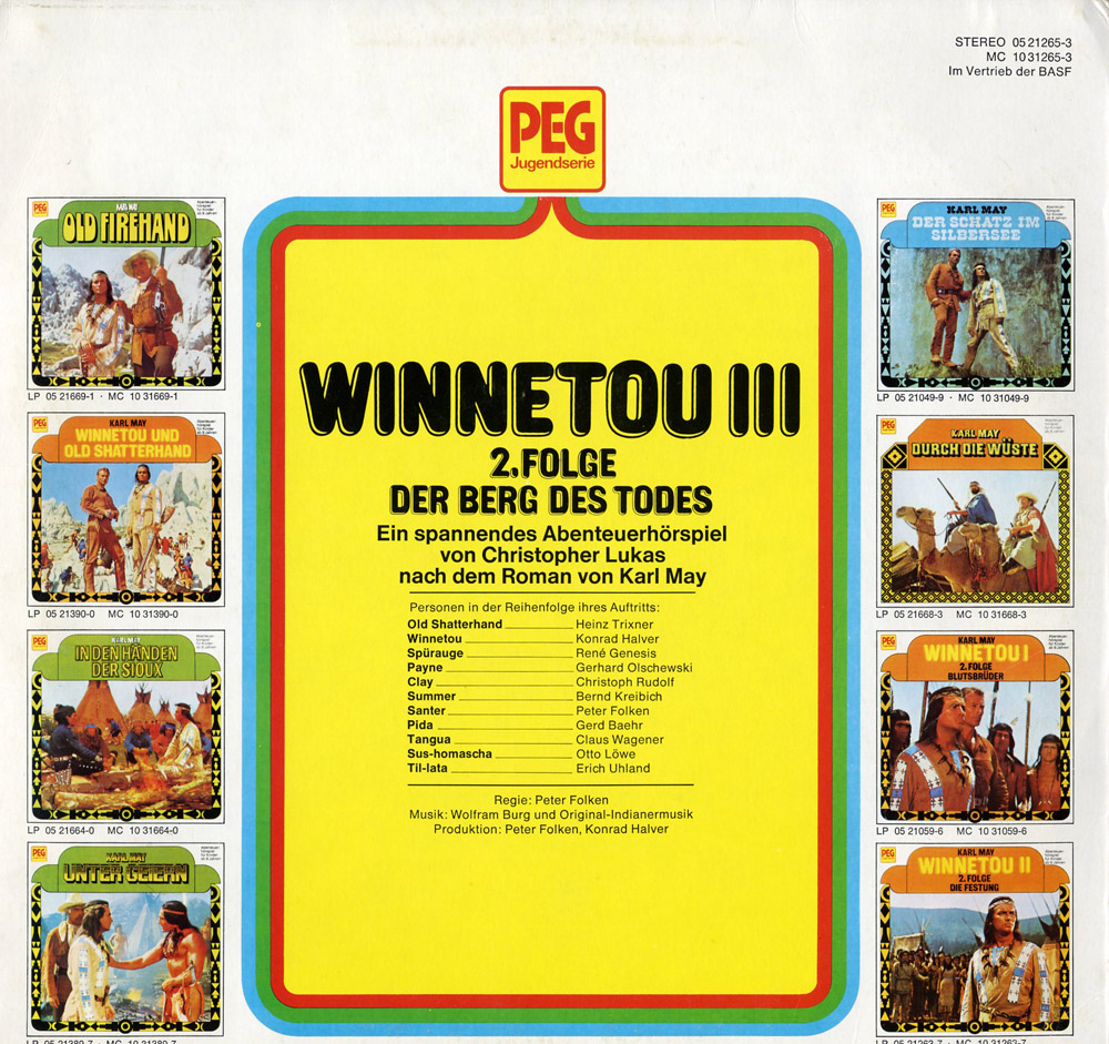 Während Europas A-Seite beim Tod Winnetous endet, hört hier bei PEG die A-Seite erst beim Zusammentreffen von Old Shatterhand mit Santer auf. Wer nun aber glaubt, auf PEG´s B-Seite müsse erheblich mehr Handlung sein als bei Europa, irrt sich. Lediglich der Auftritt des neuen Apachen-Häuptlings Til-lata ist hinzu gekommen.