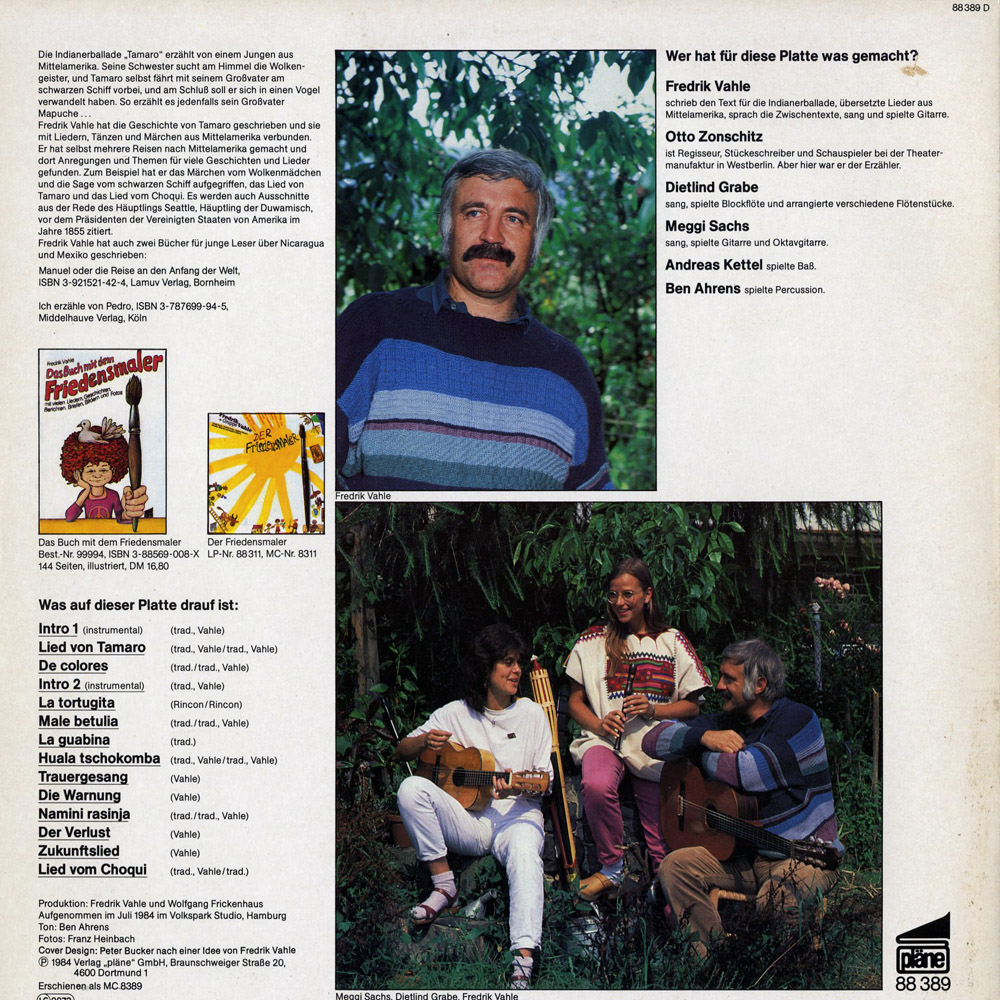 Die Indianerballade "Tamaro" erzählt von einem Jungen aus Mittelamerika. Seine Schwester sucht am Himmel die Wolkengeister, und Tamaro selbst fährt mit seinem Großvater am schwarzen Schiff vorbei, und am Schluß soll er sich in einen Vogel verwandelt haben. So erzählt es jedenfalls sein Großvater Mapuche...