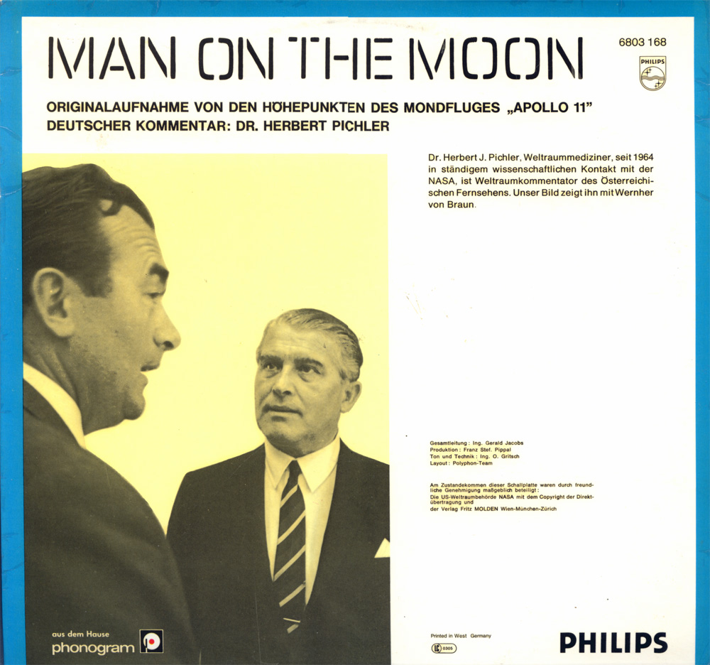 Diese LP habe ich auch schon mal gehört. Ist mehr ein Hörbuch mit Geräuschen und Kommentar des Sprechers und Worte von Neil Atrmstrong. Es gibt auch Apollo 8 (erste Mondumkriesung) und auch Apollo 13 als Hörspiel zum Film.