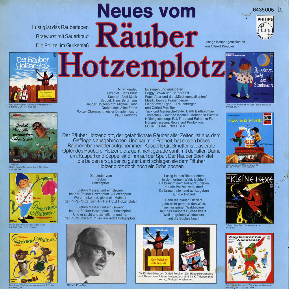 Die Kinderbücher von Otfried Preußler: Der Räuber Hotzenplotz und Neues vom Räuber Hotzenplotz sind im K. Thienemanns Verlag, Stuttgart erschienen.