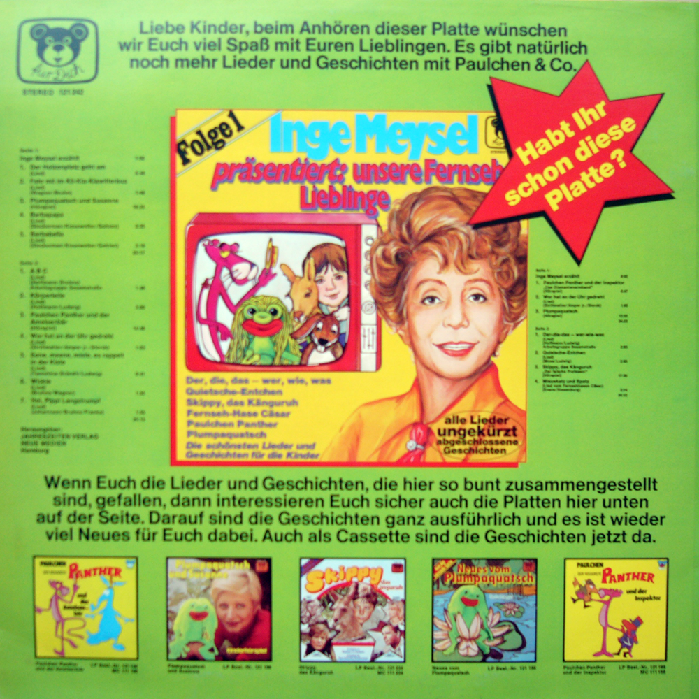 Die Platte enthält Episoden von Kinder-Fernsehserien und ein paar Titelmelodien von Kinder-Fernsehserien. Aus heutiger Sicht gesehen alles sehr nostalgisch. Heutige Kinder kennen die Serien nicht und können damit nicht viel anfangen. Zu Beginn gibt es eine kurze Einleitung von Inge Meysel. Bei einigen Liedern handelt es sich nicht um Originale.