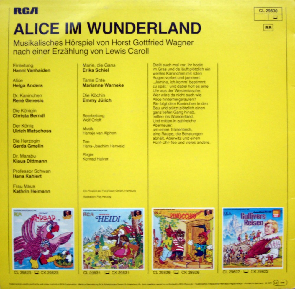 Stellt euch mal vor, ihr hockt im Gras und da läuft plötzlich ein weißee Kaninchen mit roten Augen vorbei und jammert: "Jemine, ich komm' bestimmt zu spät!", und dabei holt es eine Uhr aus der Westentasche. Wer wäre da nicht auch wie Alice hinterhergelaufen?
