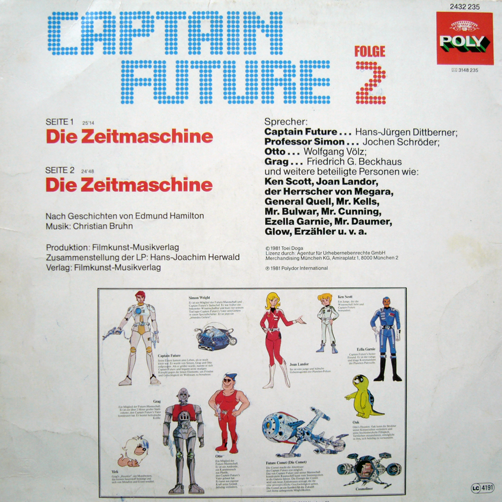 Die beiden Captain Future-LPs hätten eigentlich einen zusätzlichen Erzähler nötig gehabt, denn wenn man die entsprechenden TV-Folgen nicht kannte, konnte man kaum nachvollziehen, was gerade passierte. Vielleicht deshalb kam diese POLY-Serie nicht über 2 Folgen hinaus. Eigentlich schade, denn Musik und Stimmen sind top! Aber heute im DVD-Zeitalter sind solche LPs sowieso überflüssig.