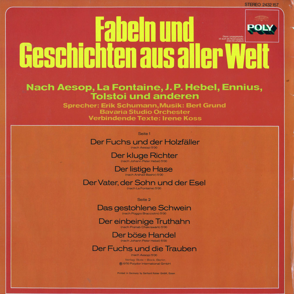 Endlich kann ich wieder mal eine Abbildung dieses TV-Ton-Hörspiels sehen, das ich damals auf LP besaß. Ich hatte nur diese einzige Folge. Leider scheint sich heute niemand mehr an diese TV-Serie zu erinnern. Auch sonst im Internet ist nichts darüber zu finden. Dabei ist die akustische Darbietung der Geschichten auf dieser Folge sehr gut. Sie werden zwar nur von einem einzigen Sprecher (Erik Schumann) vorgetragen, dafür aber mit exzellenter Musikuntermalung! Schade, dass diese Serie nicht längst mal wieder im Fernsehen gezeigt wurde, denn die alten Fabeln und Geschichten von Aesop und anderen sind zeitlos gut! Und diese ganz bestimmte Art von Zeichentrick findet man auch heute noch manchmal.