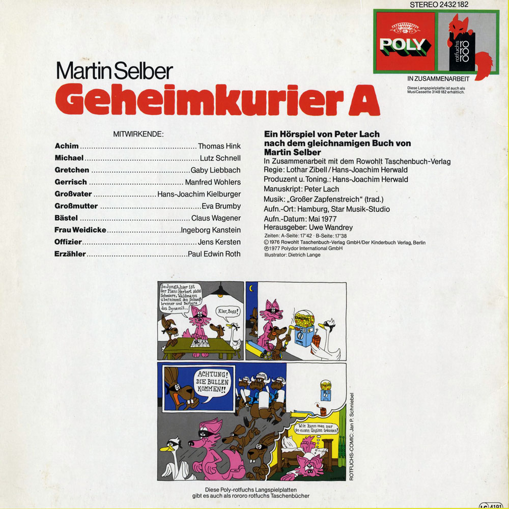 Martin Selbers (1924-2006) Jugendromane wurden in der "BRD" bei Rowohlt/Rotfuchs veröffentlicht, obwohl sie ja "DDR-Literatur" waren und eine sozialistische Tendenz nirgends verleugneten. Trotzdem wurden sie in den 1970er Jahren sogar mancherorts in der "BRD" zur Schullektüre. Das ist leicht zu erklären. In "Geheimkurier A" wird eine höchst spannende Geschichte erzählt, die außerdem das Eindringen des Faschismus ins ganz normale Kinderleben thematisiert. Das ist wirksamer als eine theoretische Analyse der Zeit zwischen 1933 und 1945! Dass das Buch heute kaum noch beachtet wird, ist sehr zu bedauern. Man sollte es wieder einmal heraussuchen - am besten zusammen mit dieser kongenialen Hörspielfassung.