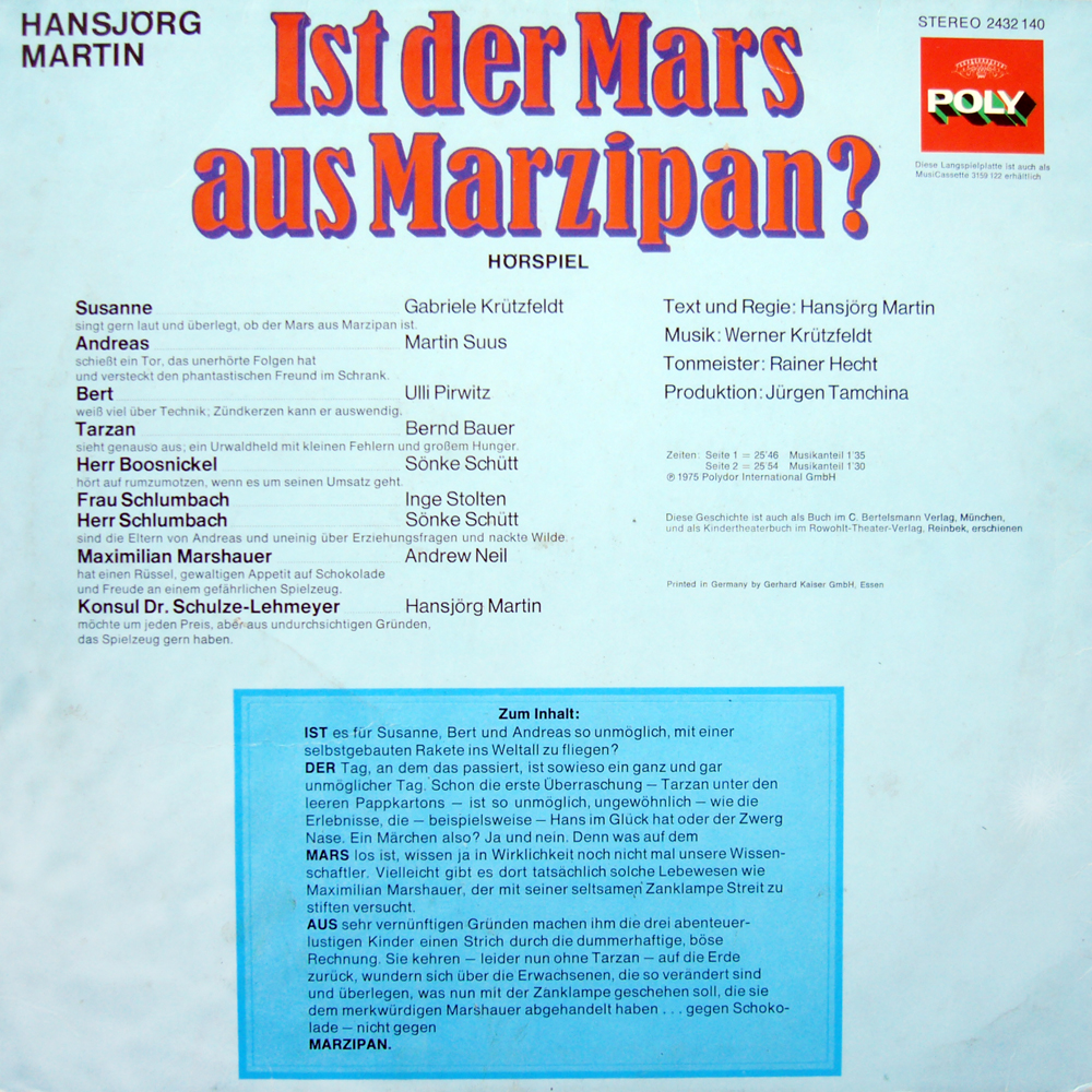 AUS sehr vernünftigen Gründen machen ihm die drei abenteuerlustigen Kinder einen Strich durch die dummerhaftige, böse Rechnung. Sie kehren – leider nun ohne Tarzan – auf die Erde zurück, wundern sich über die Erwachsenen, die so verändertsind und überlegen, was nun mit der Zanklampe geschehen soll, die sie dem merkwürdigen Marshauer abgehandelt haben... gegen Schokolade, nicht gegen MARZIPAN.