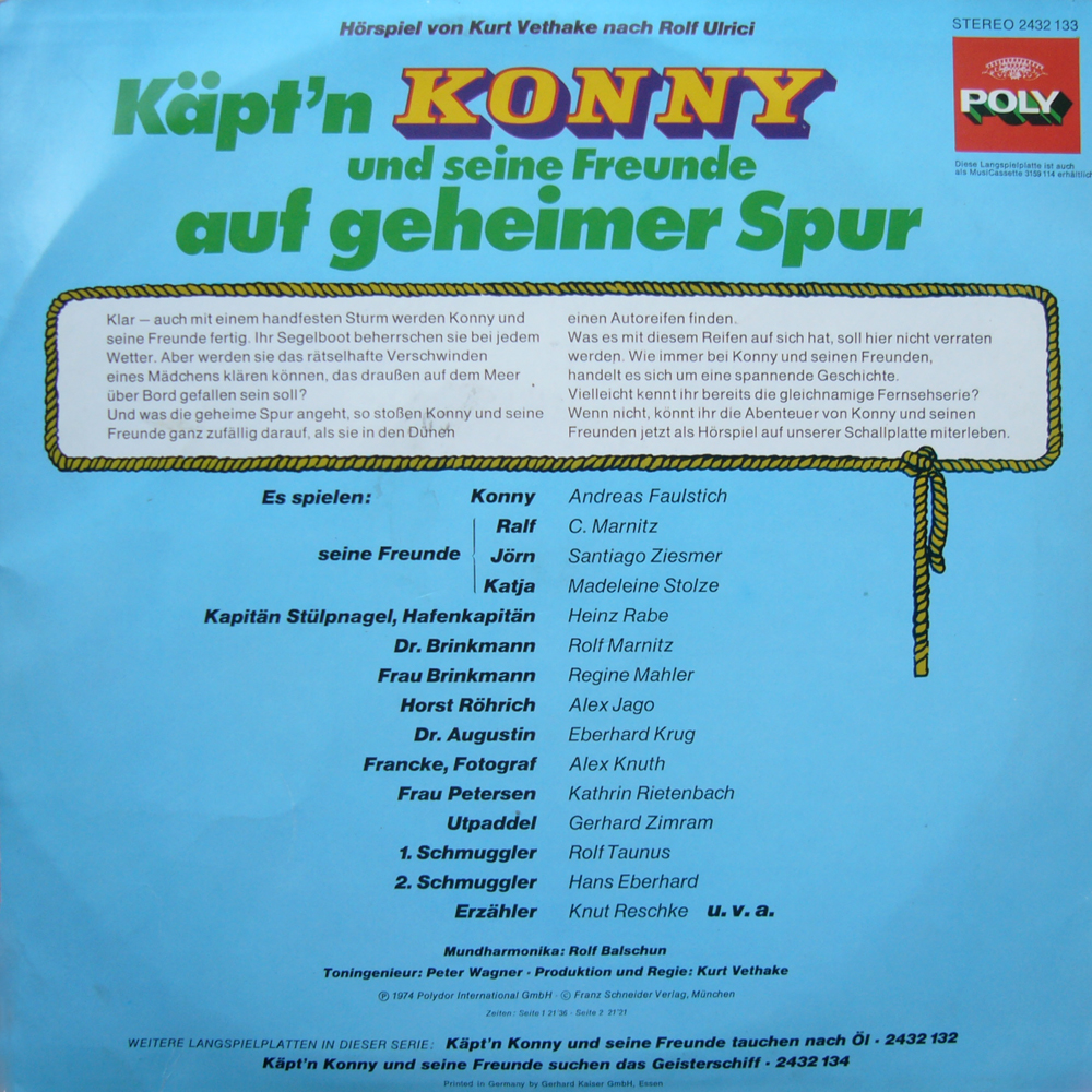 Und was die geheime Spur angeht, so stoßen Konny und seine Freunde ganz zufällig darauf, als sie in den Dünen einen Autoreifen finden. Was es mit diesem Reifen auf sich hat, soll hier nicht verraten werden. Wie immer bei Konny und seinen Freunden handelt es sich um eine spannende Geschichte.