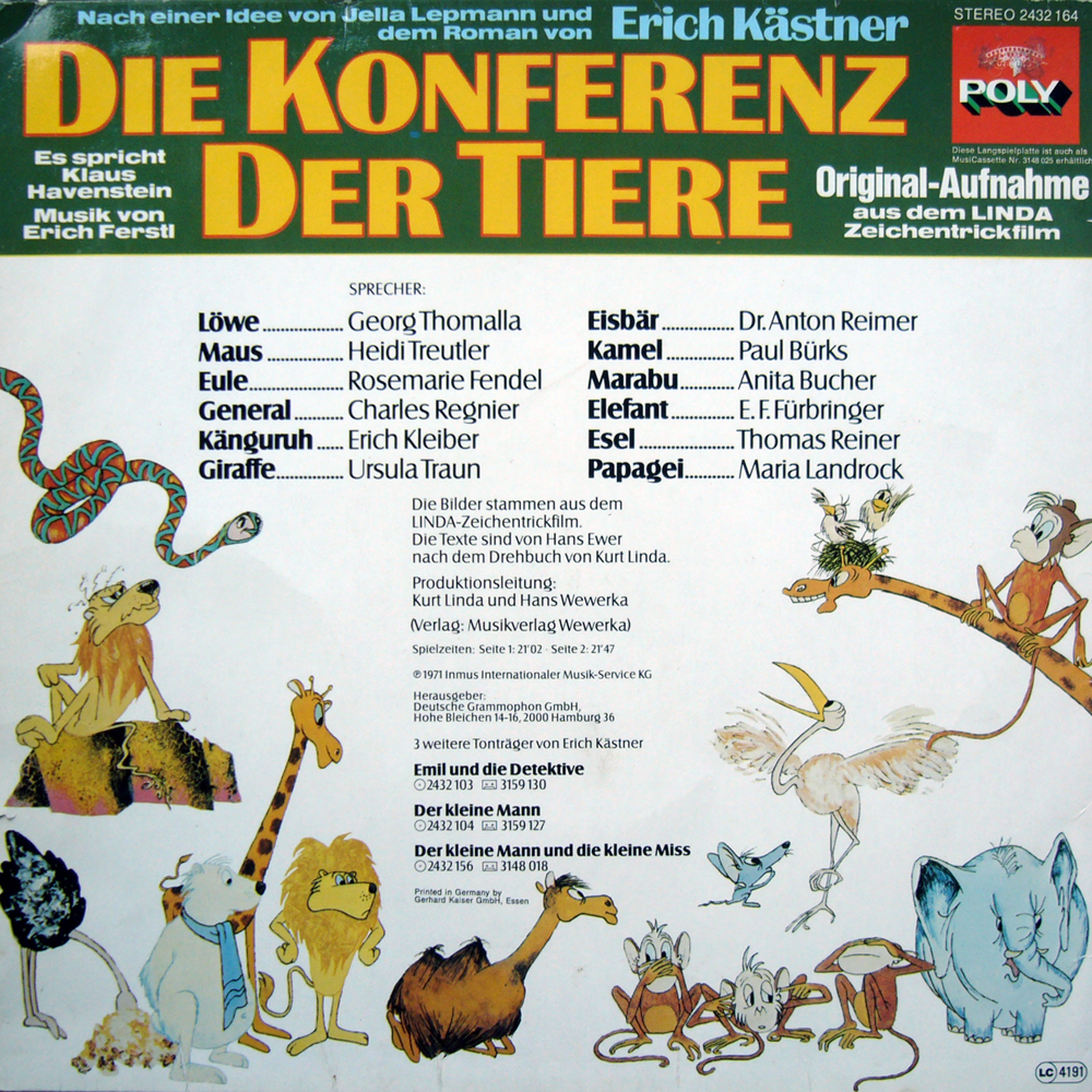 Eine schöne,kurzweilige Story mit bekannten Sprechern wie Georg Thomalla,Klaus Havenstein als Erzähler und "Dracula"Charles Regnier als -klar- Bösewicht(Soldaten-Oberst).Vor allem die Musik ist recht witzig.Kann man auch als "hartgesottener"Erwachsener hören*g*!Aber gerade für Kinder deshalb interessant,weil sie ja letztendlich in dieser Geschichte im Mittelpunkt stehen.