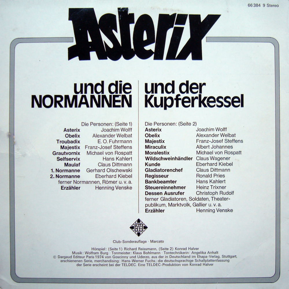 Habe diese Platte heute bekommen. Kannte bislang nur die Versionen von Europa und Karussel. Asterix und die Normannen...mmhja. Nicht ganz so doll. Ziemlich traschig und die Dialoge hören sich teilweise an wie die Synchroversionen von billigen amerikanischen Talkschows. Habe auch irgendwie das Gefühl das da was fehlt.