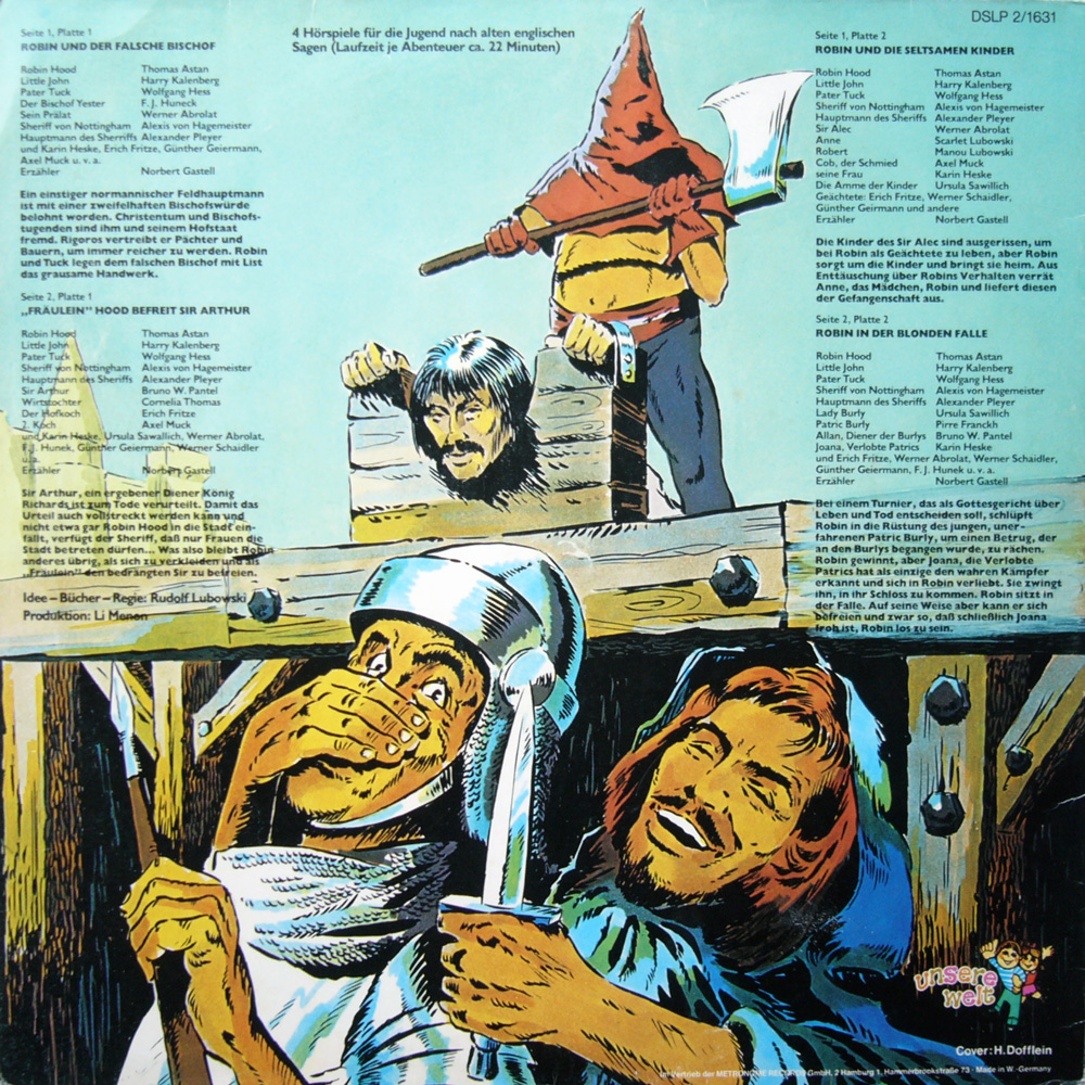 Wie viele Doppel-LP's der Metronome-Label "Unsere Welt", "PLP" oder "Perl-Serie" bestehen auch bei diesem Hörspiel die Covervorder- und Rückseiten aus zwei Illustrationen.Im Innenteil befindet sich eine Übersicht weiterer Doppel-LP's und keine Illustration.Im Spezial Coverillustrationen gibt es weitere Titel zu sehen!