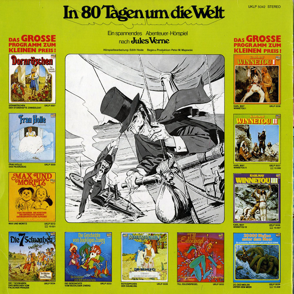 Hallo, mich würde interessieren, was das für eine Platte ist. Woher stammt z. B. die Bestellnummer? Ich vermute, es handelt sich um diese Version, die ihr auf meine Homepage unter GESAMTLISTE VERTONUNGEN, und dort unter 12.07: In 80 Tagen um die Welt (1969, Regie: Peter M. Majewski, Verlag: Zebra, Hörspiel)