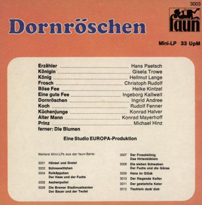 Das Hörspiel ?Dornröschen? wurde auf folgenden LP's wiederveröffentlicht: E 2042, 175 003.8