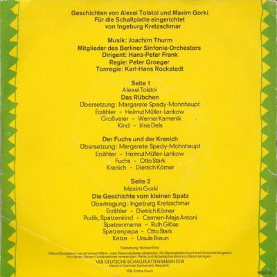 Geschichten von Alexei Tolstoi (Das Rübchen, Der Fuchs und der Kranich) und Maxim Gorki (Die Geschichte von Kleinen Spatz). Übersetzung: Margarete Spady-Mohnhaupt