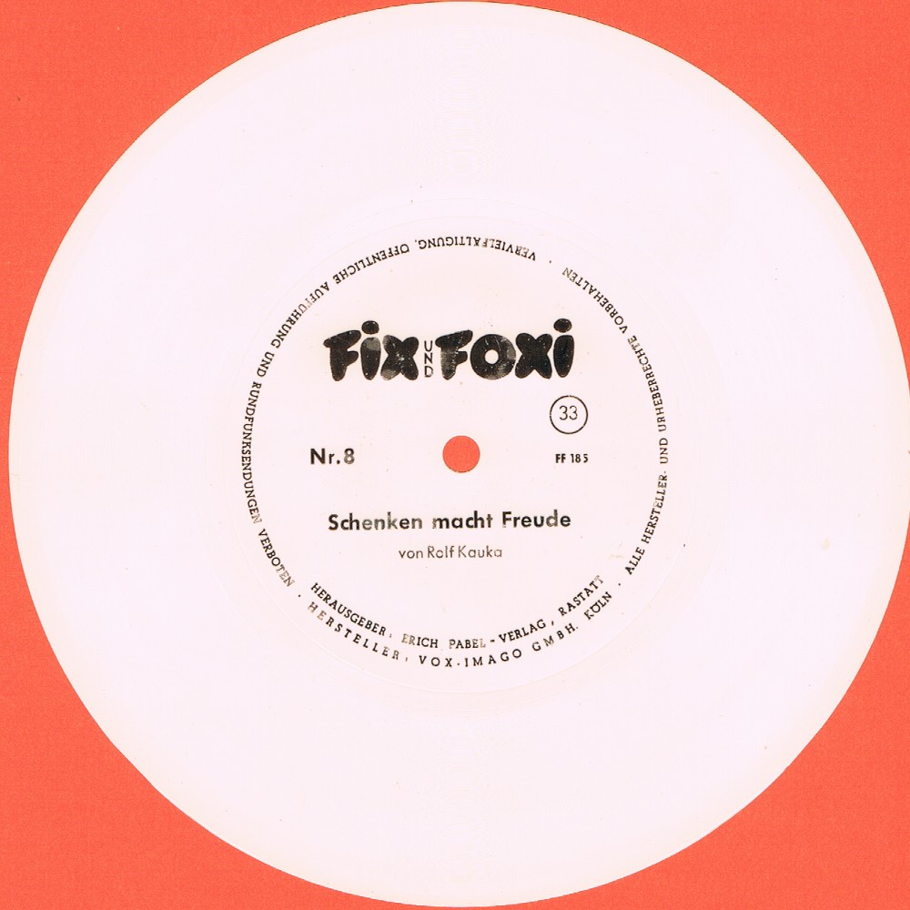 Einseitige weisse Schallfolien auf 33 upM, waren in den ersten Fix & Foxi - Heften der frühen 1960er eingeklebt.