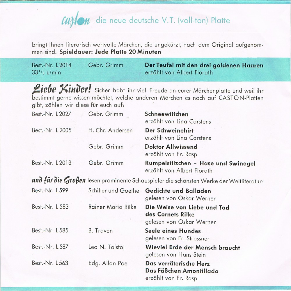 auf 33 Umdrehungen, Firmenlochcover, auch in einem 4er-Set "Im Märchenland" enthalten