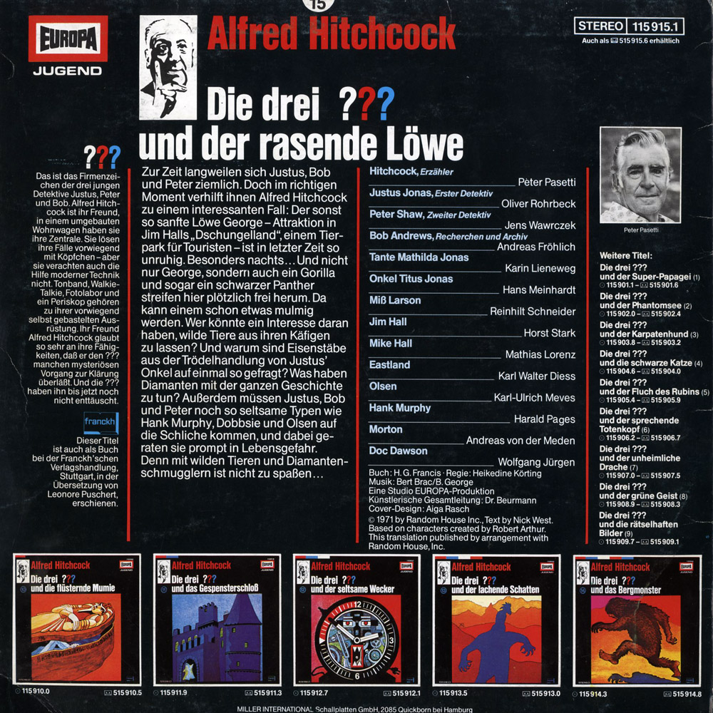 Titel » Die drei Fragezeichen - Folge 015: Die drei ??? und der rasende Löwe