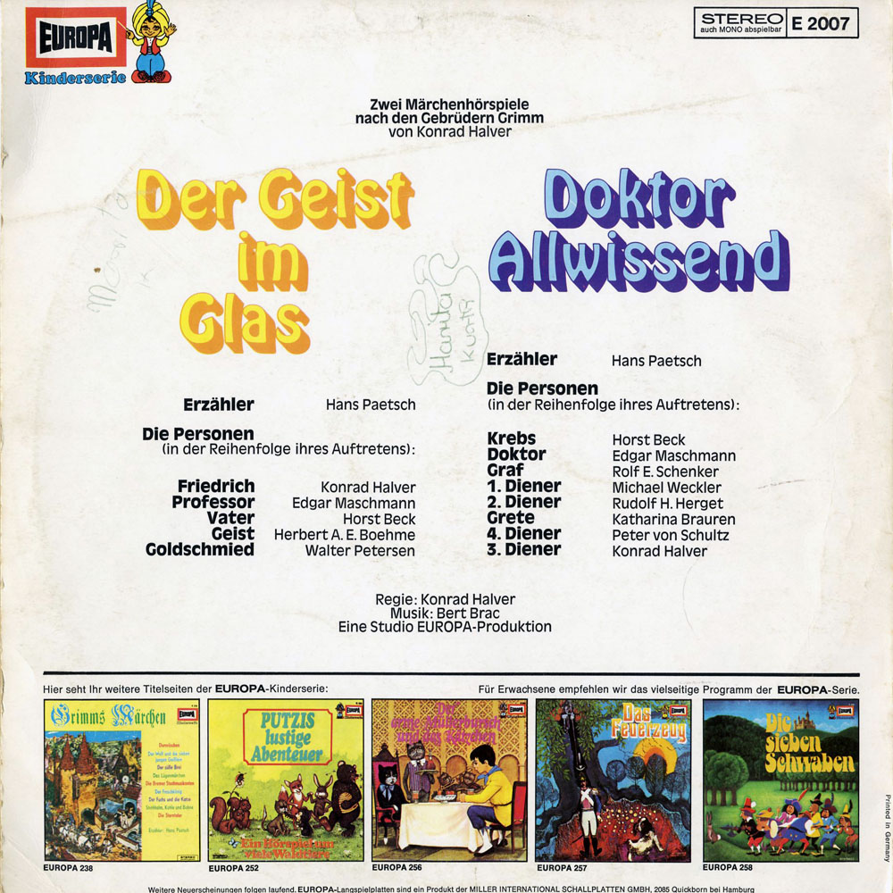 Hier kann ich mich gar nicht zwischen A- und B-Seite entscheiden.Der humorvolle Doktor Allwissend und der hinterlistige Flaschengeist sind beide auf ihre Art genial.