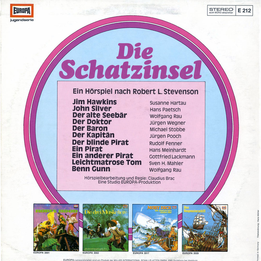 Meine "Lieblingsschatzinsel" ist übrigens die Version von Heinz-Günter Stamm mit Herbert Fleischmann als Erzähler und Günther Ungeheuer als John Silver. Einfach genial!