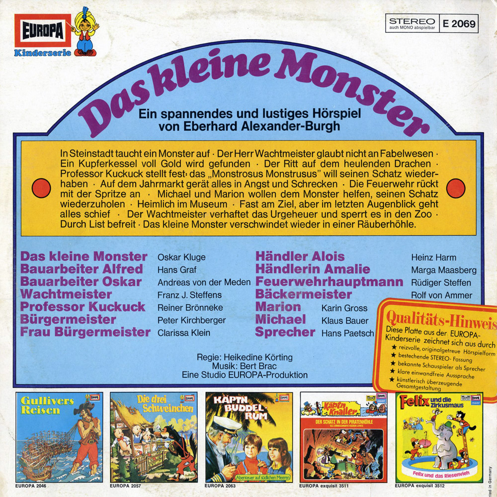 Das Monster kommt zwar witzig aber recht träge herüber, was insbesondere daran liegt, dass F.-J. Steffens in der Rolle des Monster klingt wie Rudolf Fenner. Auch an Albernheiten wird einiges geboten: Ein Monster das mit Matsch wirft...