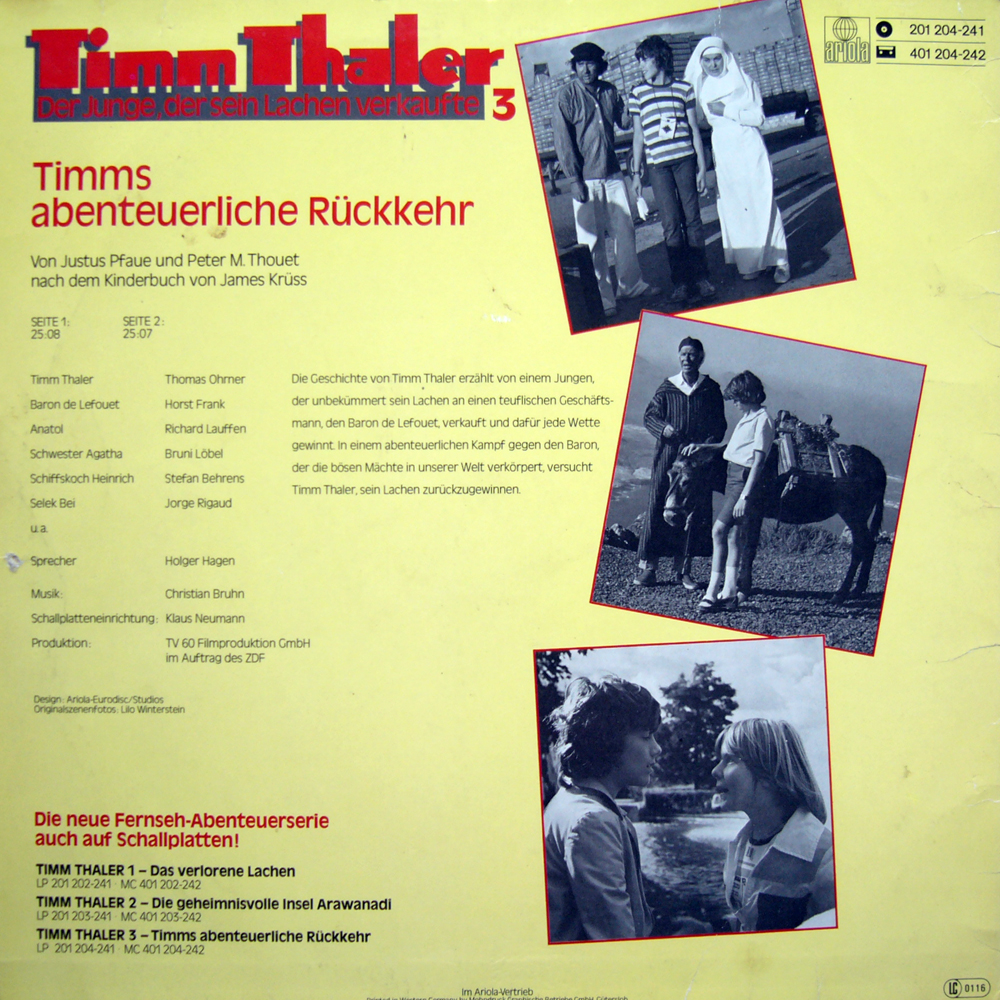 Nämlich als ich das damals mit angesehen hatte, mit dem DSDS-Küblböck als ... nunja ... "Antistar" (analog zum Antihelden) und alles von RTL-Gorillas abgeschottet, damit keiner außer RTL Fotos von ihm schießen konnte - ja, da musste ich in der Tat an Timm Thaler denken!! Kübi war ja schon älter als TImm, und hatte zwar nicht sein Lachen, dafür aber sein komplettes bisschen Persönlichkeit verkauft und wurde von anderen fremdgelenkt und -gesteuert. Und alles wurde getan, damit dessen "Exklusiv-Vertragspartner" auch exklusiv bleibt und andere für Unsummen diverse Fotos abkaufen müssen.