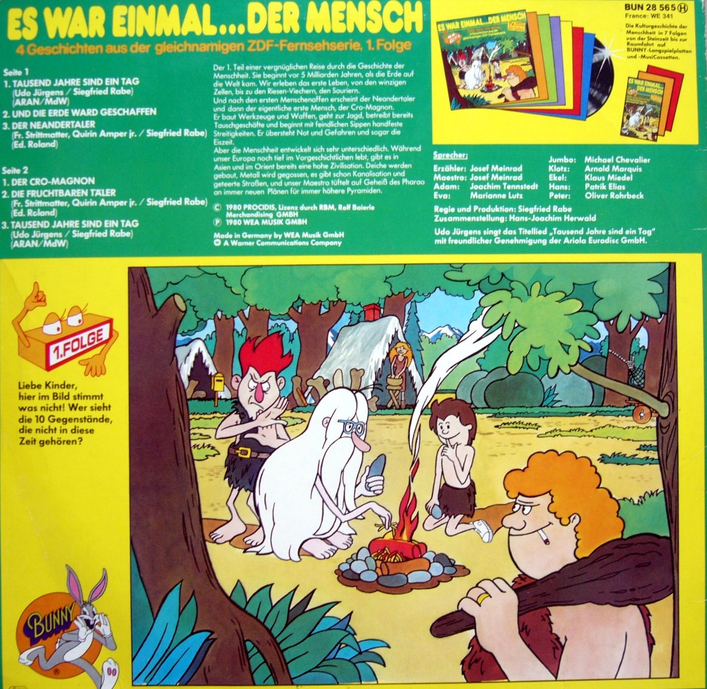 Diese französische Zeichentrick-Serie (an der sich viele europäische TV-Anstalten beteiligt hatten) lief ca. 1980 zum erstenmal im deutschen TV und erzählte die Geschichte der Menschheit vom Urknall bis zur Raumfahrt in sehr unterhaltsamer Weise. Hauptperson war der weißbärtige Maestro (gesprochen von Josef Meinrad), der auch als Erzähler fungierte. Seine Erklärungen sind das einzig Lohnende an der 7-teiligen Hörspiel-Serie, denn die Szenen mit all den anderen Figuren sind akustisch nur selten nachvollziehbar, weil das dazugehöhrige Fernsehbild fehlt.