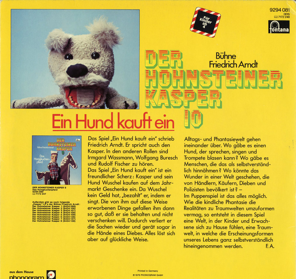 Großmutters Geburtstag steht bevor. Kasper und sein Hund Wuschel wollen Geschenke für sie, aber auch für sich selber kaufen und gehen zum Jahrmarkt. Dort trennen sie sich damit sie nicht sehen, was der Andere für sie kauft, denn das soll ja eine Überraschung sein. Wuschel kauft die Sachen für Kunststücke. Aber ihm gefallen die Geschenke für Kasper und Großmutter so sehr, dass er sie selber behalten will. Also versteckt er sie im Garten von einer alten Frau. Die alte Frau findet die Sachen und holt sie ins Haus, damit derjenige dem sie gehören, sie abholen kann. Der Hund hat es sich nun anders überlegt und will die Sachen zurückholen und verschenken, findet sie aber natürlich nicht mehr. Er will dann auf dem Jahrmarkt neue Sachen kaufen, aber seine Kunststücke haben alle schon gesehen und keiner will ihm noch etwas dafür geben. Ein Mann der alles mitgehört hat bietet dem Hund alles Mögliche an, wenn er ihm Kunststücke vormacht, in Wirklichkeit will er aber nur wissen, wo der Hund die Sachen versteckt hat. Sobald er das weiß, steckt er Wuschel in einen Sack, um ihn bei Gelegenheit zu verkaufen und macht sich auf den Weg zu der alten Frau. Der Kasper aber kommt vor ihm dort an und verkleidet sich als alte Frau. Die alte Frau selber aber geht schnell zur Polizei, währen Kasper den Dieb festhält. Der Dieb muss sagen wo Wuschel ist. Sehr gut geeignet für kleine Kinder ab Vier Jahren.