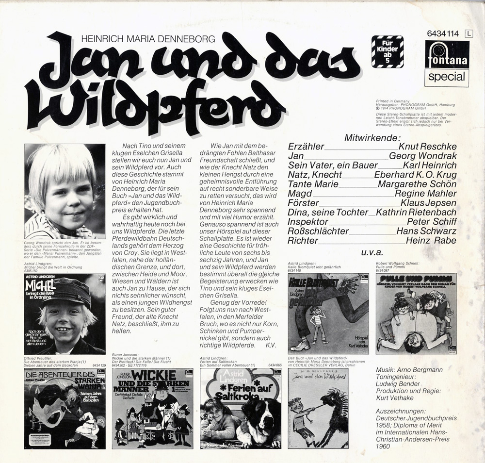 Die Sprecher sind wunderbar. Hinter der nunmehr alten Technik gaben sie einen zum Besten und ihre Stimmen lassen wunderbare Bilder im Kopfe entstehen. Jan, gesprochen von Georg Wondrak, nimmt man den kleinen Buben ohne Zweifel ab. Sein Wissensdurst und seine Abenteuerlust sind nicht zu zügeln und der Knecht Natz, gesprochen von Eberhard Krug, hat so seine leichte Mühe, Jan Rede und Antwort zu stehen. Kurzum: Vethakes Händchen für die richtige Sprecherbesetzung war wieder einmal gegeben.
