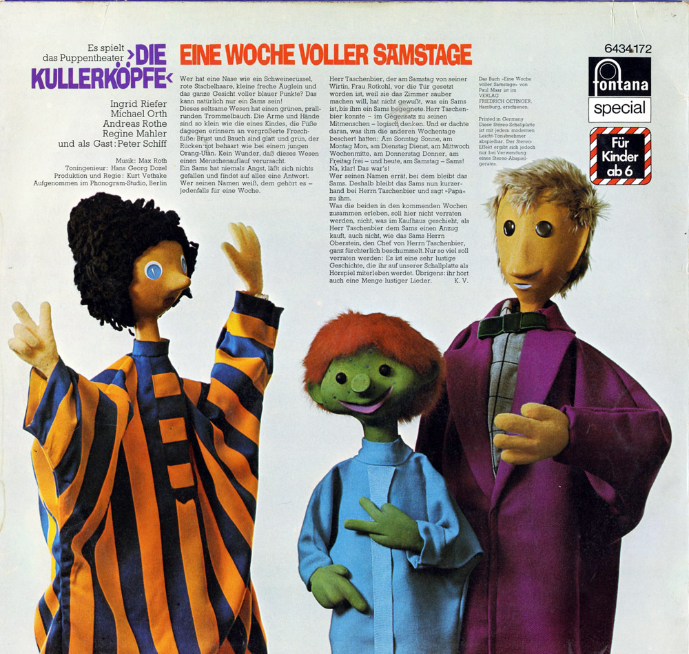Das Sams war - neben Pumuckl - ein Held meiner Kindheit. Sonntagmorgens denke ich manchmal, wie praktisch so eine KBA (Knackwurstbringanlage) wäre...