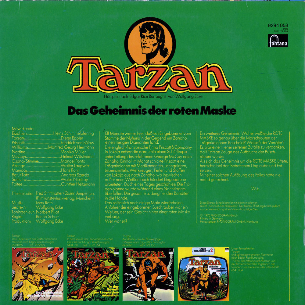 Jedenfalls sind die anderen Tarzan-Folgen (Affenmensch,Piratenschatz,Sklavenjäger) absolut klasse und gehören für mich zu den besten Hoerspielen die jemals gemacht worden sind!!