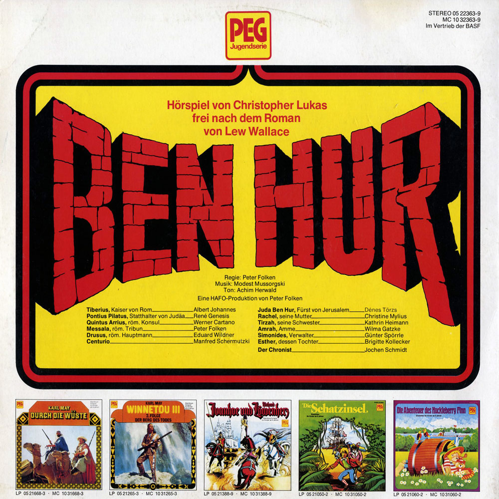 Ich habe die Kassette zusammen mit meinem ersten Recorder zum siebten Geburtstag bekommen. Ben Hur von PEG gehört sicherlich zu den besten ernsthaften Vertonungen für Kinder.