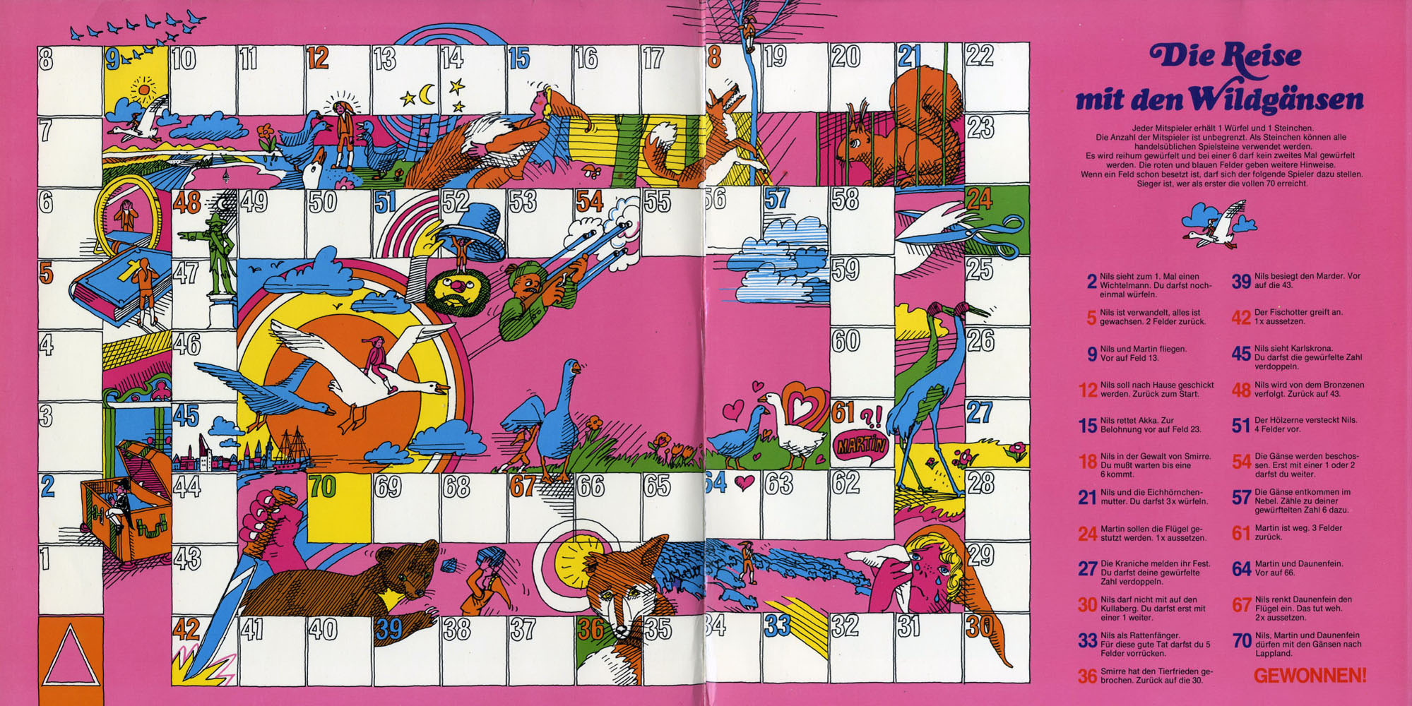 Aufgeklappter Innenteil mit Würfelspiel und Anleitung