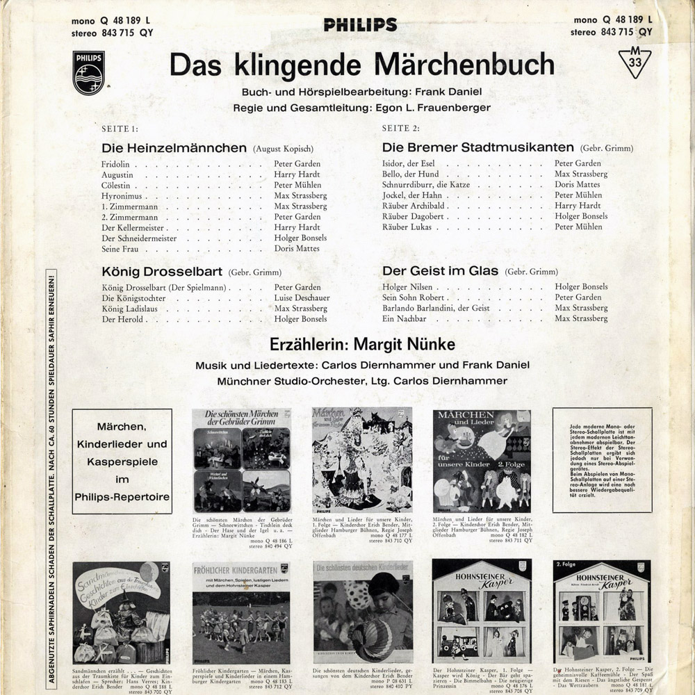 Die exakt gleiche Märchen-Zusammenstellung erschien auch auf der Philips-Doppel-LP "Das große bunte Märchen-Album".