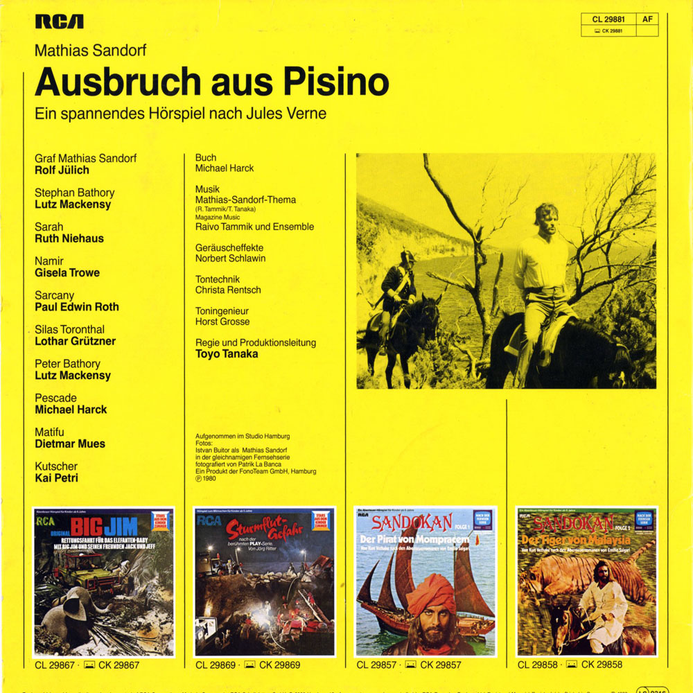 Endlich habe ich beide Teile der RCA-Version von Mathias Sandorf als LP in meiner Sammlung vereinen können und kann mit Stolz geschellter Brust behaupten, dass diese beiden LP´s zu den Highlights meiner Sammlung gehören. Bei der Story handelt es sich um eine Adaption des recht bekannten Romans von Jules Verne. Die Umsetzung ist hervorragend gelungen und geht, insbesondere mit Blick auf die Romanvorlage, in die Tiefe, sodass selbst Details herausgearbeitet wurden und somit eigentlich alles, was im Roman vorkommt, sich auch im Hörspiel wiederfindet. Zwar könnte man aufgrund der Covergestaltung annehmen, dass es sich um eine Originalton-Aufnahme der gleichnamigen Fernsehserie von 1979 handelt, welche im Dezember 1979 erstmals im ZDF auf sog. Weihnachts-Vierteiler ausgetrahlt wurde, doch ist dies nicht der Fall. Es handelt sich um eine eigenständige Produktion unter der Regie von Toyo Tanaka. Selbst die Titelmelodie der Fernsehserie wurde hier nicht verwendet.