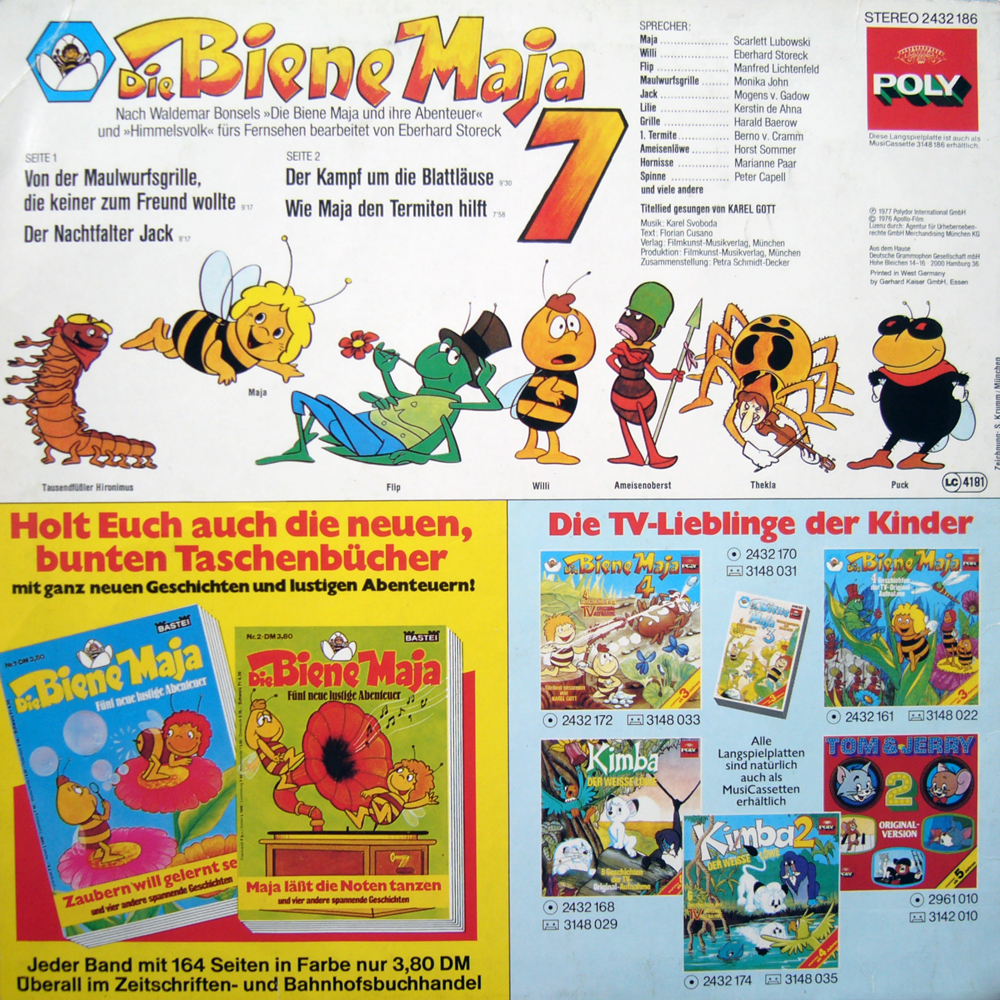 Nach Waldemar Bonsels "Die Biene Maja und ihre Abenteuer" und "Himmelsvolk" fürs Fernsehen bearbeitet von Eberhard Storeck.