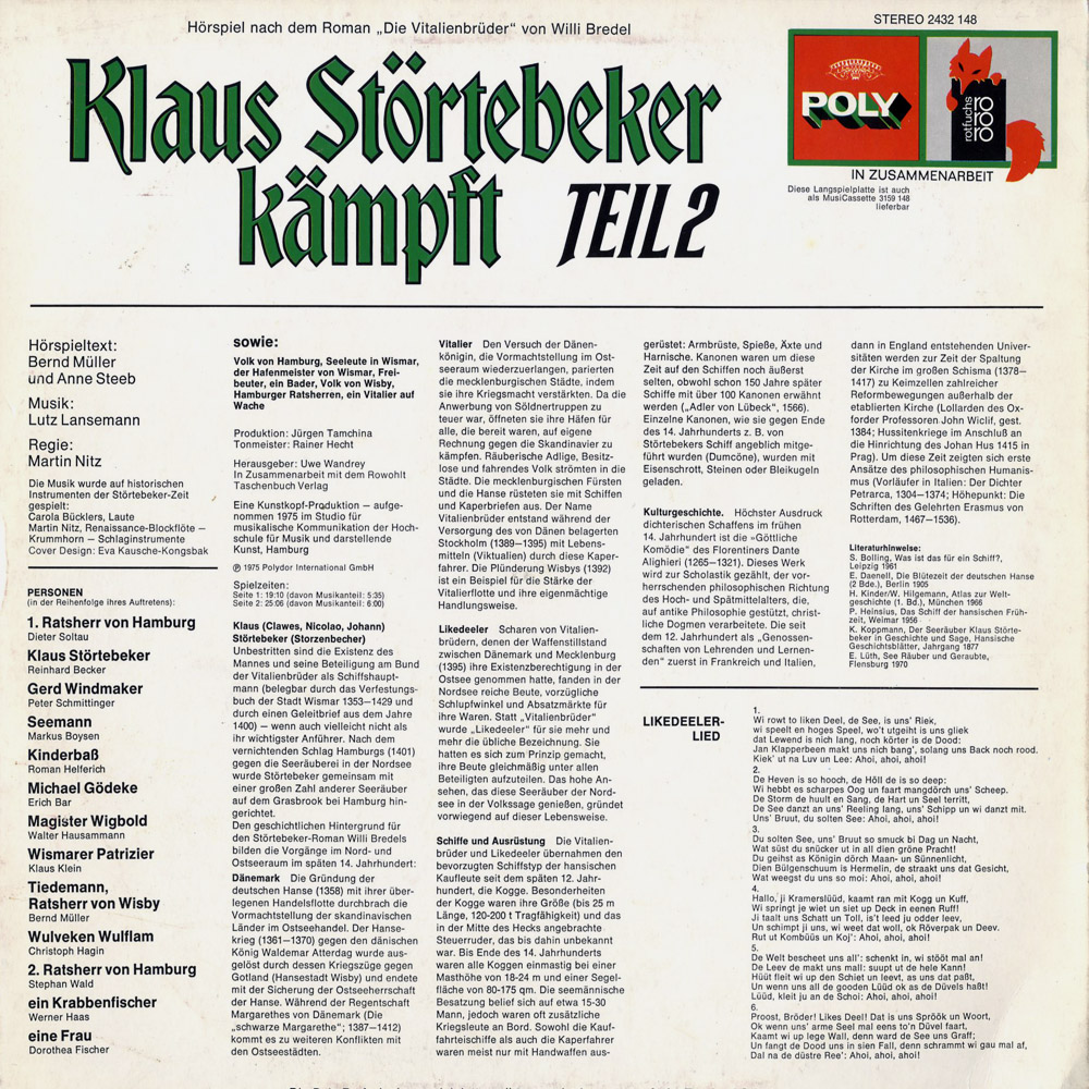 Zur Machart siehe meinen Kommentar zu Teil 1. Dieser 2. Teil beginnt mit der berühmt-berüchtigten Hinrichtungsszene. Alsdann wird als Rückblende von Störtebekers Raubzügen zu Wasser und zu Lande erzählt, und wie er letztlich durch eine List seiner Feinde gefangen genommen werden konnte. Mir wurde diese List allerdings erst klar, als ich das Buch von Willi Bredel gelesen hatte - hier im Hörspiel geht das ganze wieder mal im Durcheinandergeschrei der Seeräuber unter (zwar authentisch, aber nicht sehr hörerfreundlich).