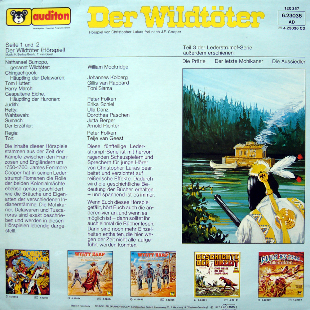 Eine der besten Wildtöter Vertonungen überhaupt, und ich habe einige gehört. Alleine schon Peter Folken als Häuptling der Huronen ist genial! Selten einen solch überzeugenden Indianer-Sprecher gehört.